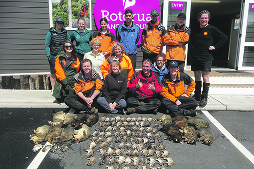 Rotorua Canopy Tours, Goodnature and DOC staff show the haul of rats and possums from one night of trapping using Goodnature A24s and A12 self-resetting traps.
